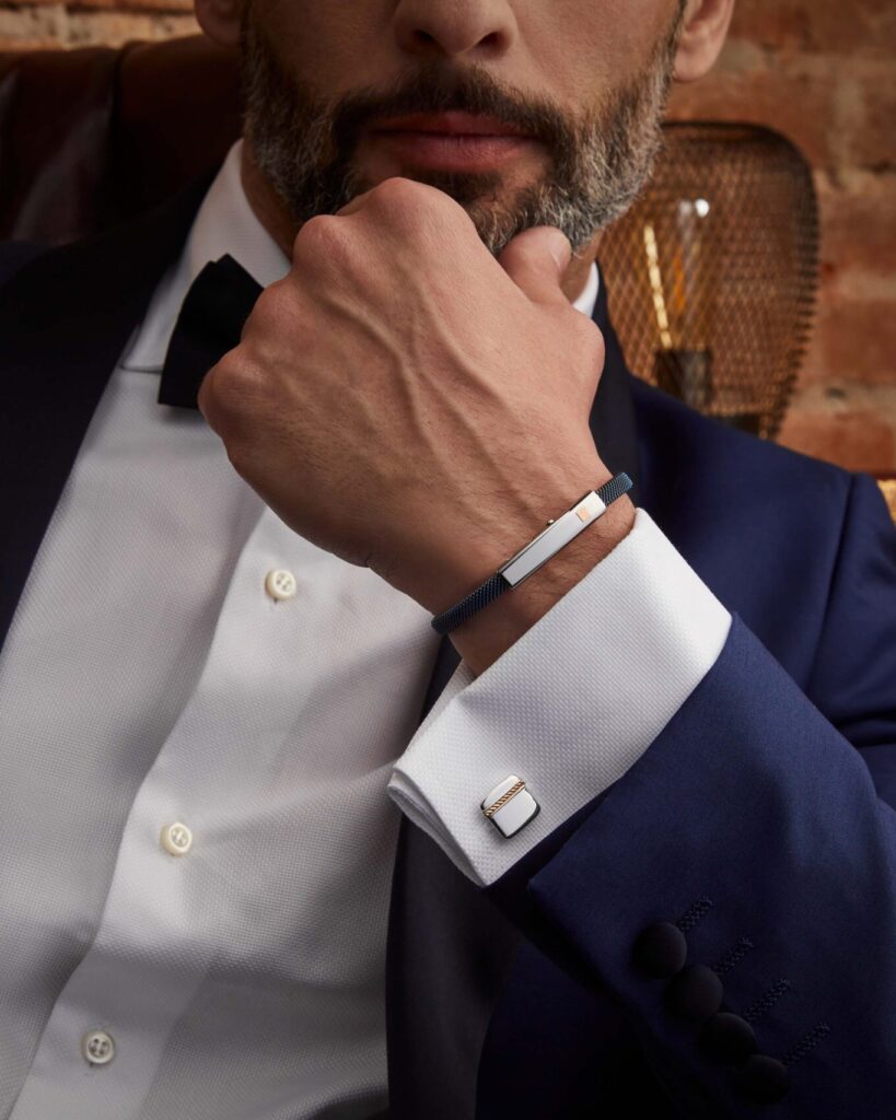 Ogni pezzo di questa collezione è un’ode alla semplicità raffinata e all’eleganza senza tempo. La combinazione di design essenziale e dettagli sorprendenti rende i bracciali “Cosmo” un simbolo di armonia cosmica che si manifesta attraverso forme e materiali attentamente selezionati. Sono disponibili due differenti misure in tre colorazioni PVD oltre all’acciaio naturale. L’elemento prezioso, in forma geometrica quadrata, è in oro rosè.