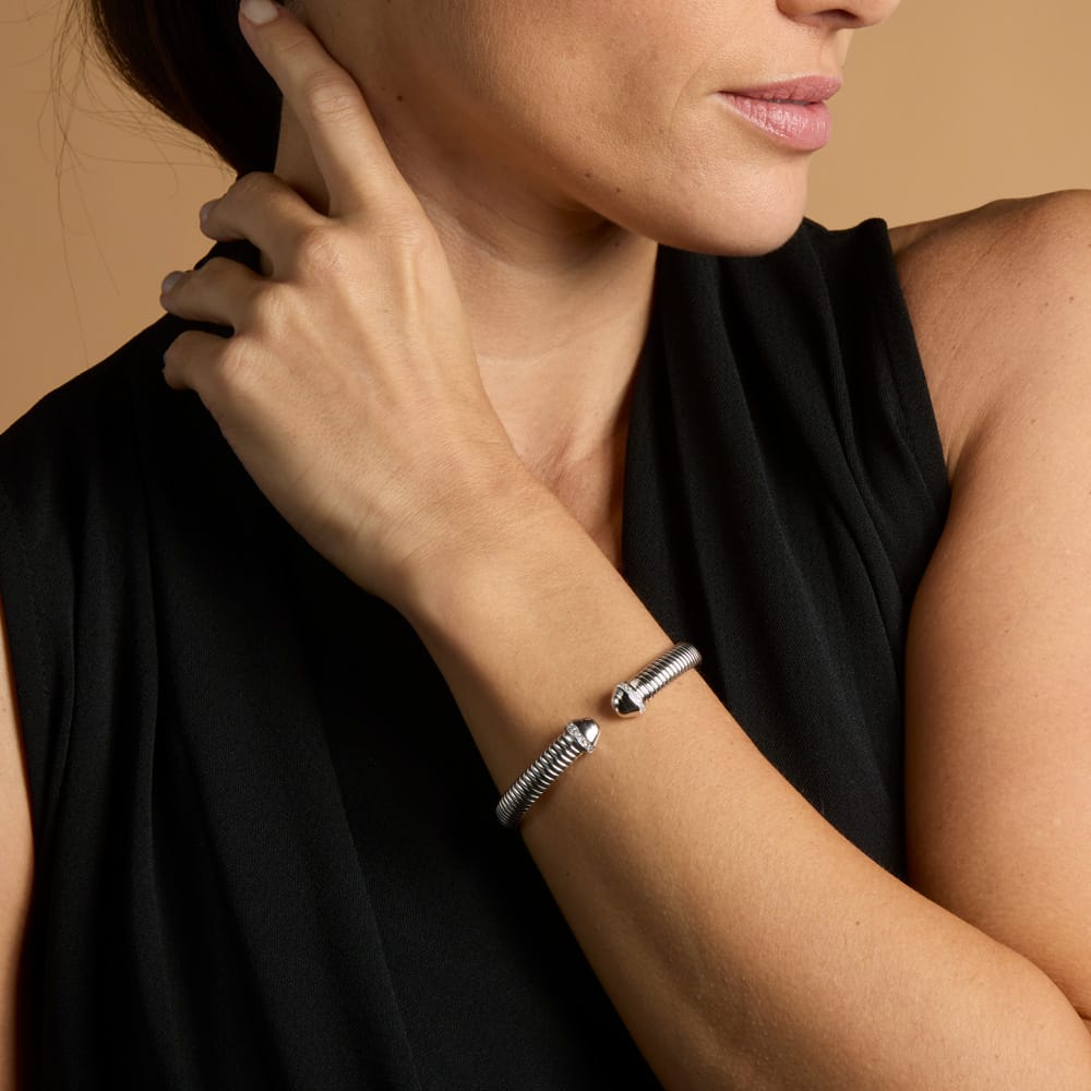 Eleganza magnetica e fascino senza tempo, la collezione Iside cattura l’essenza della raffinatezza attraverso un design sinuoso e impeccabile. Questi bracciali realizzati in argento 925% richiamano l’aura di maestà e potere della dea Iside, con dettagli scintillanti che aggiungono un tocco di lusso sofisticato. Questi gioielli sono una dichiarazione di eleganza e audacia, concepiti per accompagnarti in occasioni speciali, dove la femminilità, la forza e la spiritualità sono celebrati.